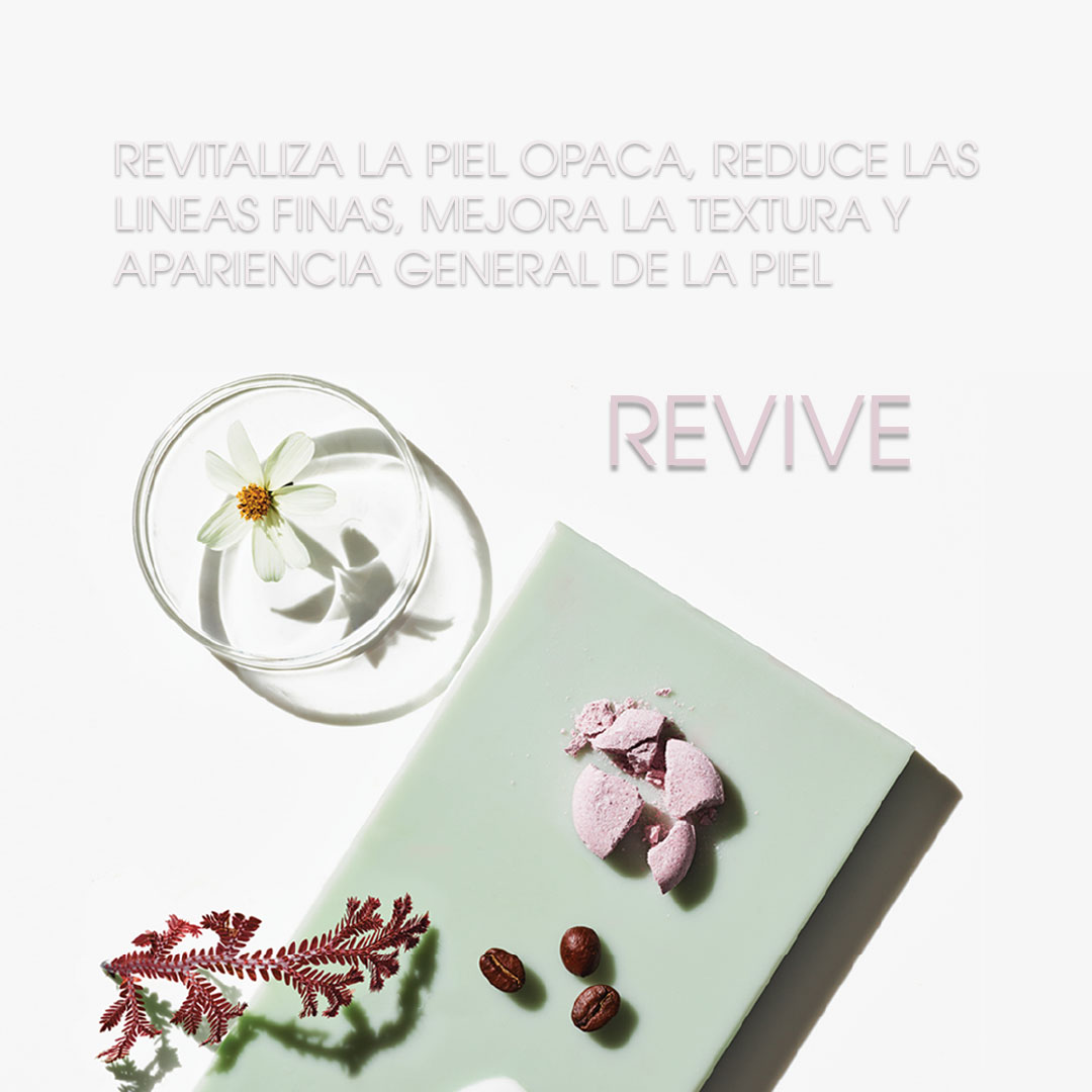 El OxiPod Revive está diseñado para pieles que desean un rejuvenecimiento visible. Contiene ácido hialurónico y extracto de algas rojas, ingredientes conocidos por su capacidad de hidratar profundamente, reducir la apariencia de arrugas y mejorar la elasticidad de la piel.